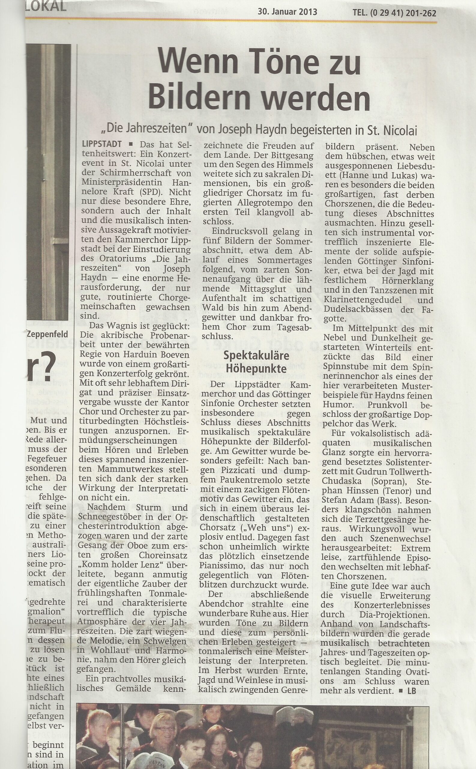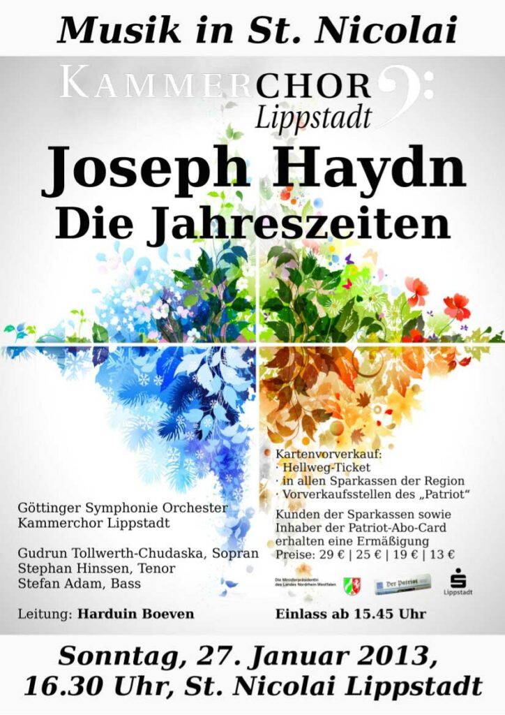Kammerchor Lippstadt | Göttinger Symphonie Orchester | Gudrun Tollwerth-Chudaska (Sopran), Stefan Hinssen (Tenor), Stefan Adam (Bass) | Leitung: Harduin Boeven