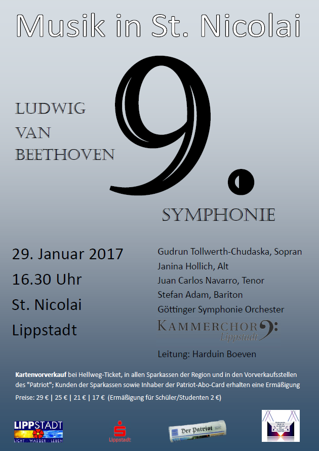 Kammerchor Lippstadt | Sopran: Gudrun Tollwerth-Chudaska | Alt: Janina Hollich | Tenor: Juan Carlos Navarro | Bariton: Stefan Adam | Göttinger Symphonie Orchester | Leitung: Harduin Boeven