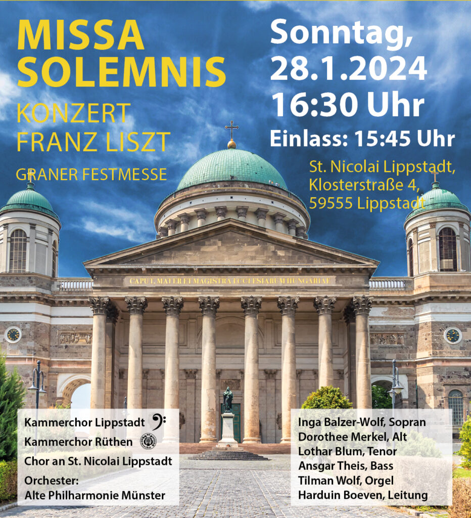 Kammerchor Lippstadt | Kammerchor Rüthen | Chor an St. Nicolai | Sopran: Inga Balzer-Wolf | Alt: Dorothee Merkel | Tenor: Lothar Blum | Bass: Ansgar Theis | Orgel: Tilman Wolf | Alte Philharmonie Münster | Leitung: Harduin Boeven